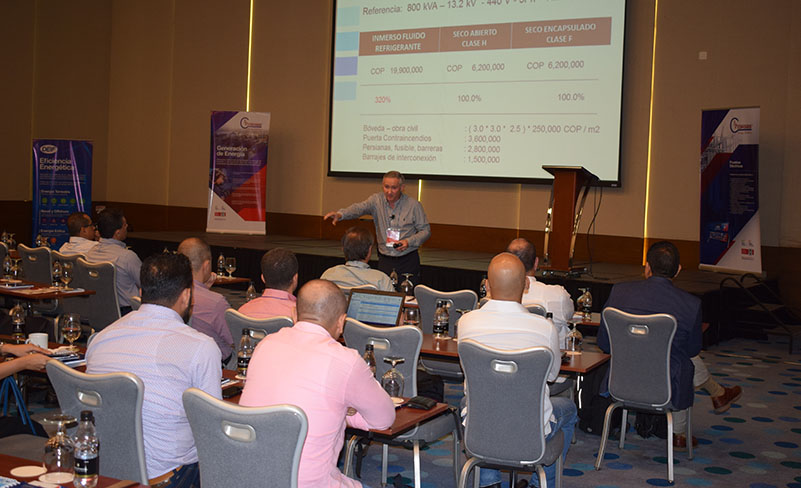 Contamos con participación de compañías como Transformadores Suntec de Colombia y Omicron Energy de Houston, exponiendo nuevas tendencias en transformadores para el sector, pruebas avanzadas, casos de falla y análisis de fallas en generadores.
